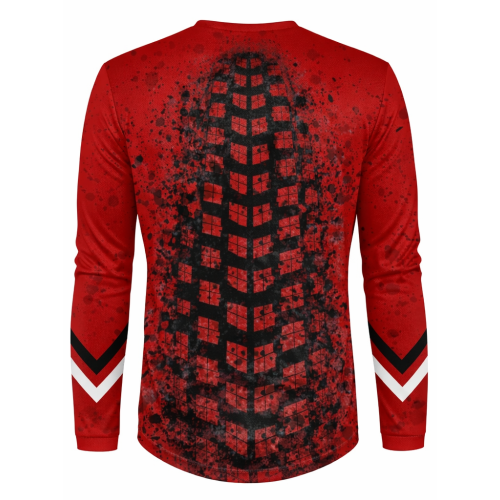 MX RebelRush ROOST Red to bluza inspirowana momentem, gdy tylne koło wyrzuca piach w wyjściu z zakrętu.